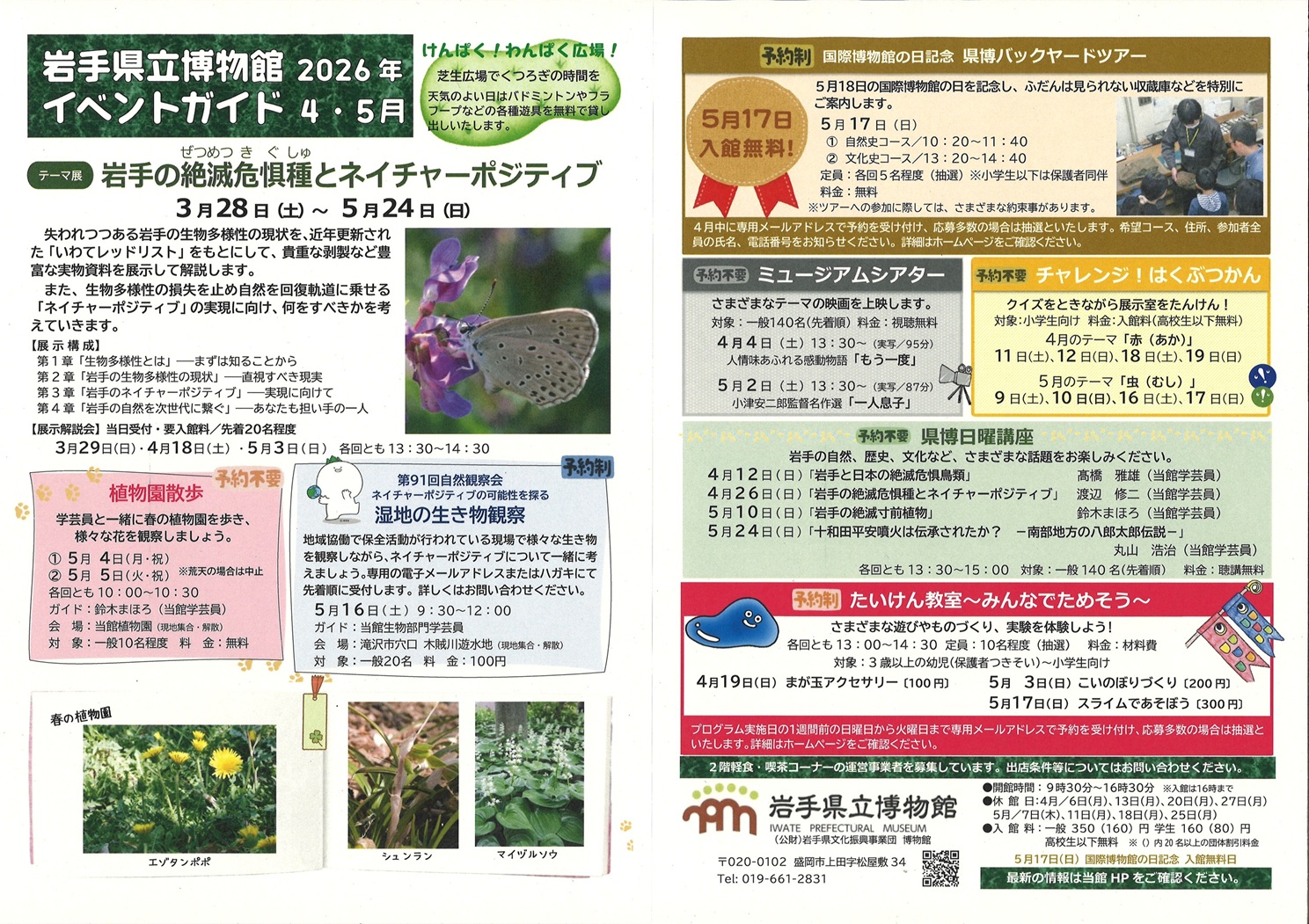 4月と5月のもよおしをまとめたイベントガイドを発行いたしました。