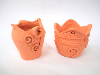 「土器づくり」:焼かずに固まる粘土を使い、縄文土器をつくります。