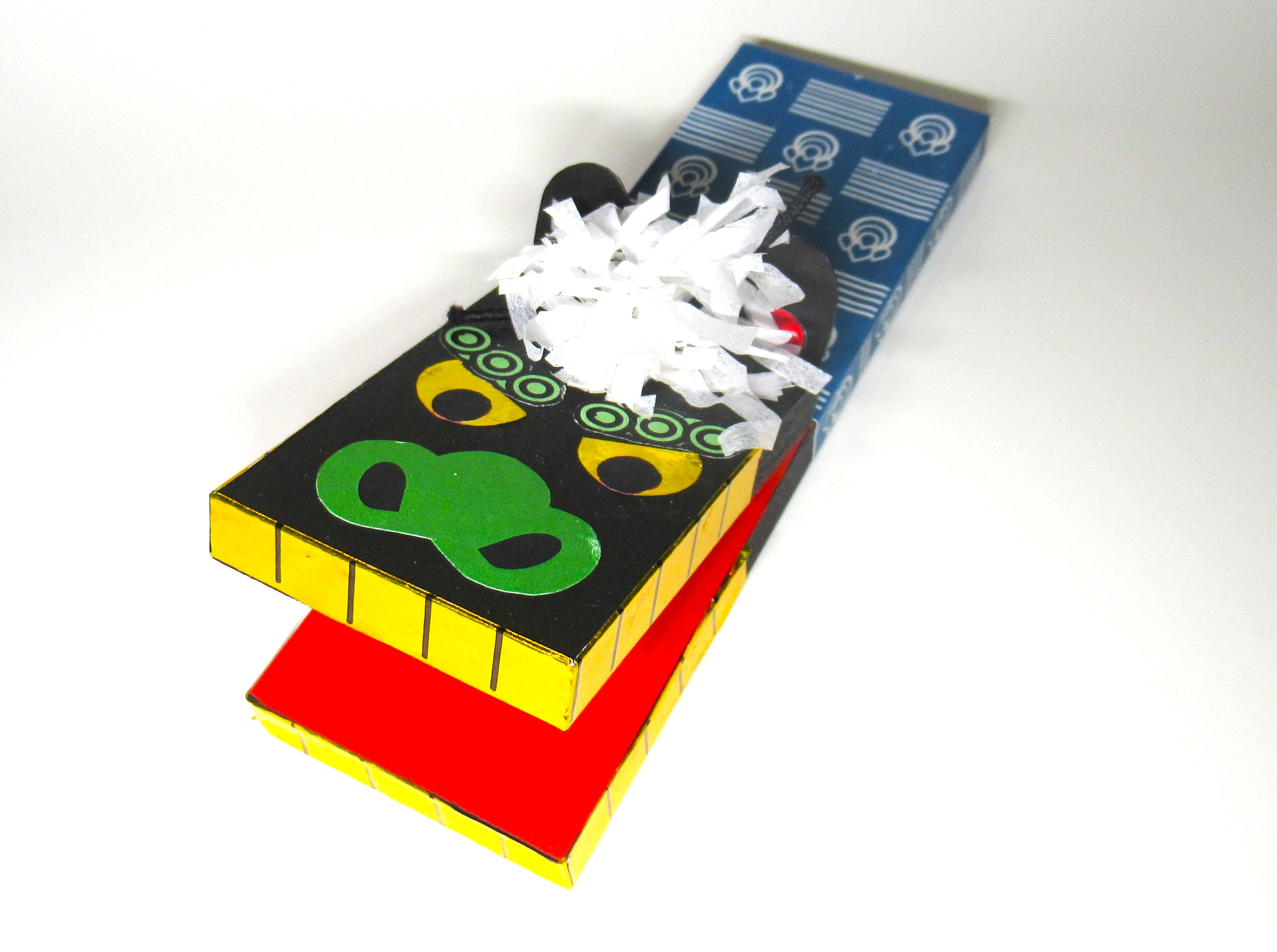 「ごんげんさまのカスタネット」:木の板やおりがみ、ゴム紐などを使ってごんげんさまのカスタネットをつくります。