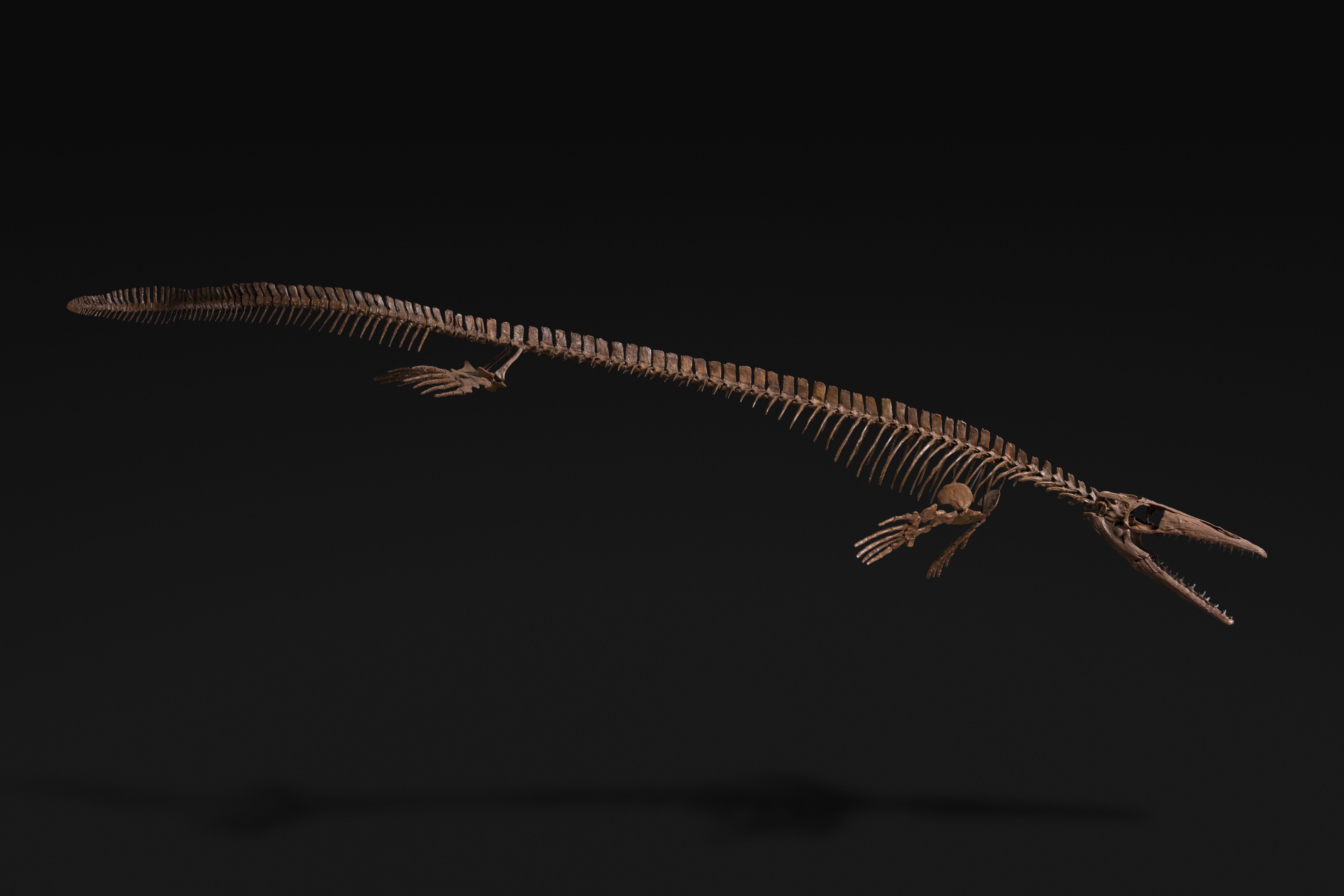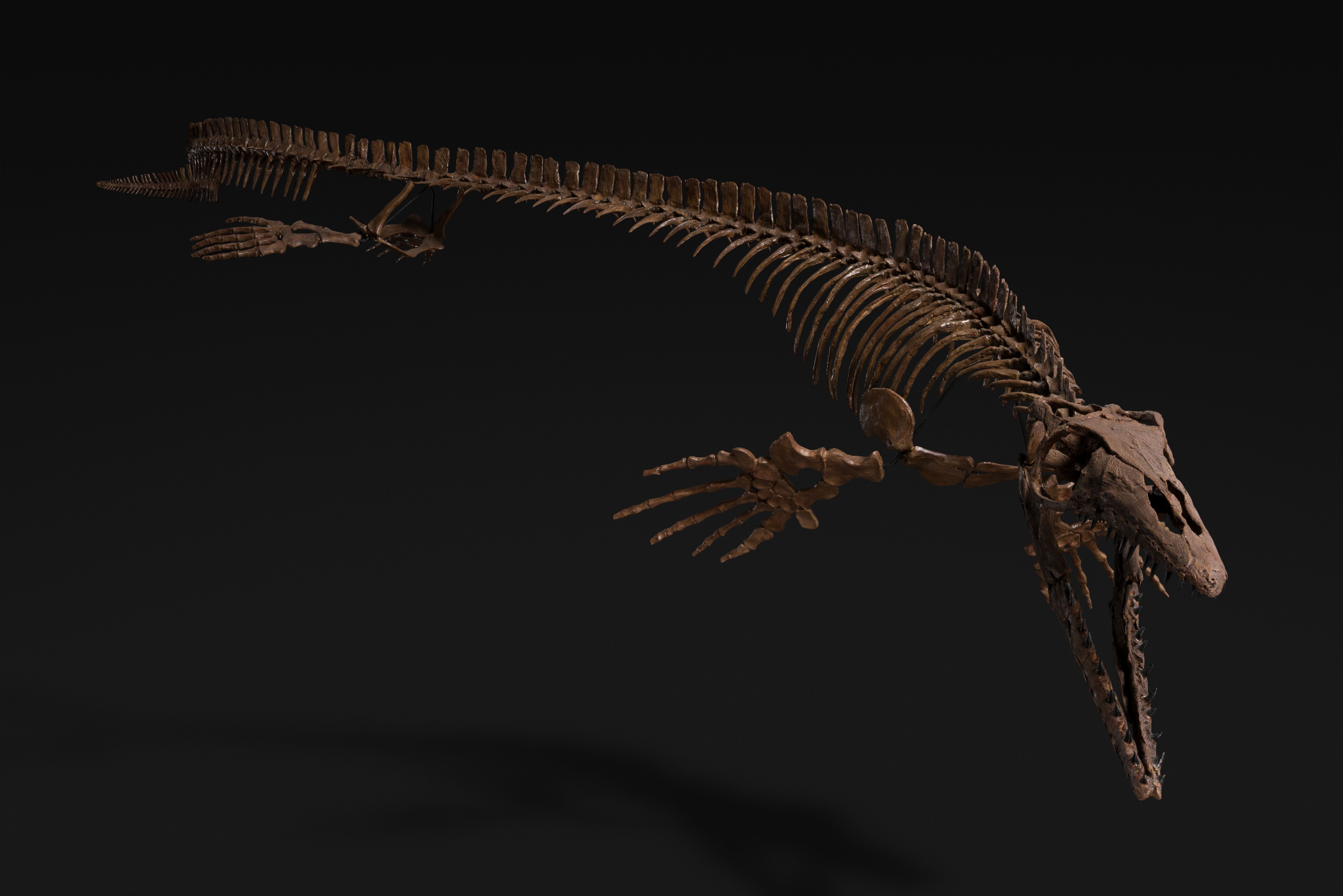 モササウルスは大型の種類では全長15 mにもなるものがいましたが、クリダステスはその中ではかなり小型の種類です。【キーワード】は虫類、モササウルス、海